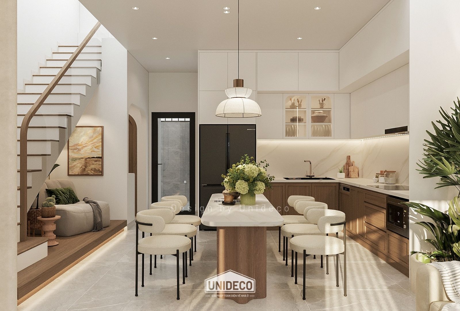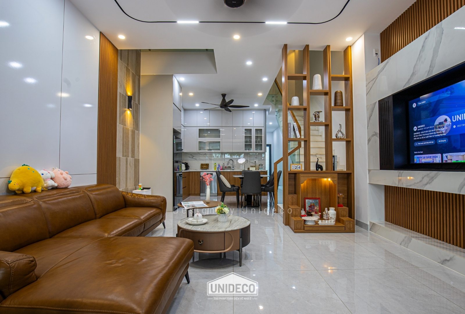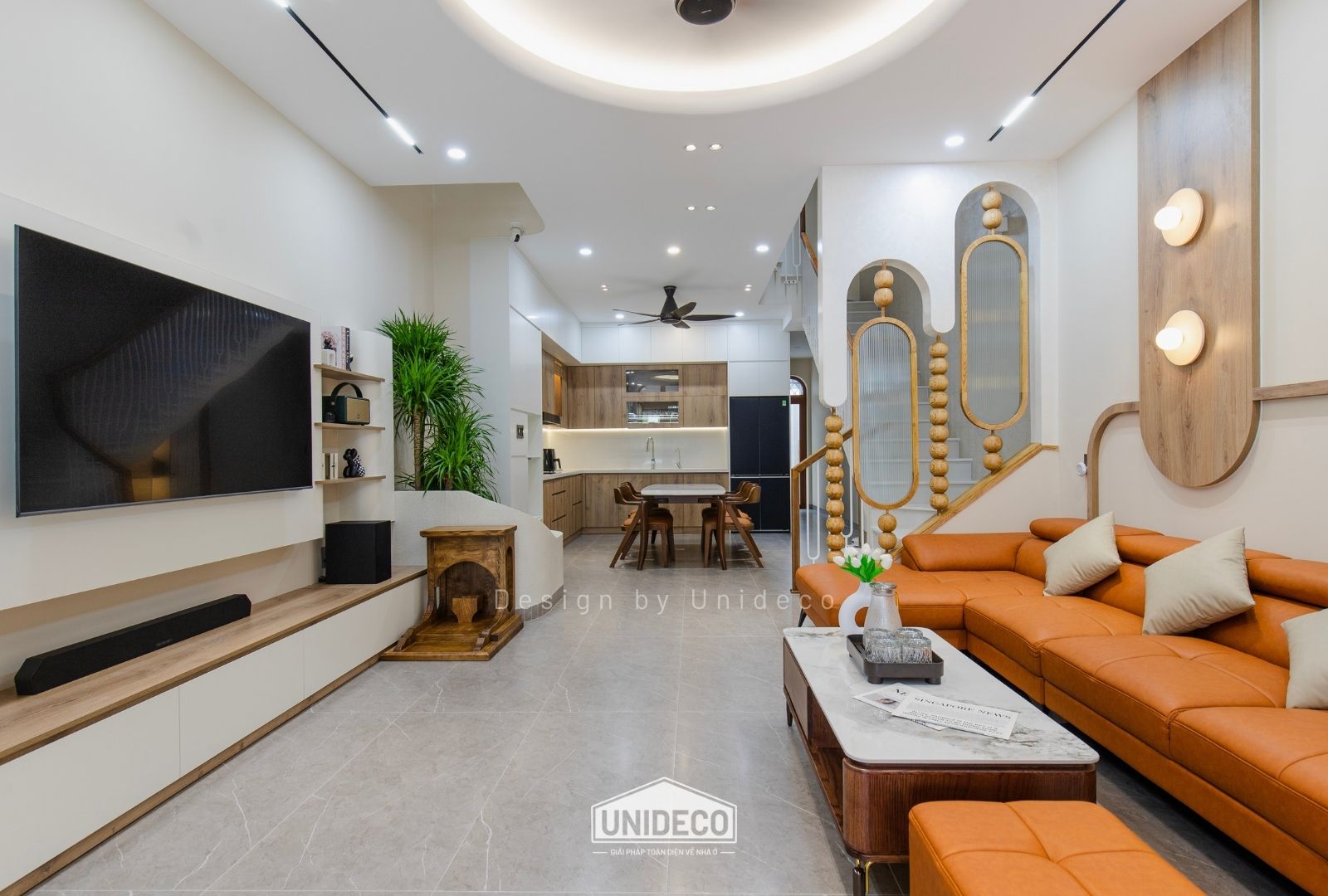 Không gian nhà phố được Unideco tối ưu từng mét vuông, vừa tôn vinh vẻ đẹp thẩm mỹ, vừa phù hợp nhịp sống đô thị. Thiết kế có chiều sâu – thi công chuẩn chỉnh – vận hành bền vững theo thời gian.