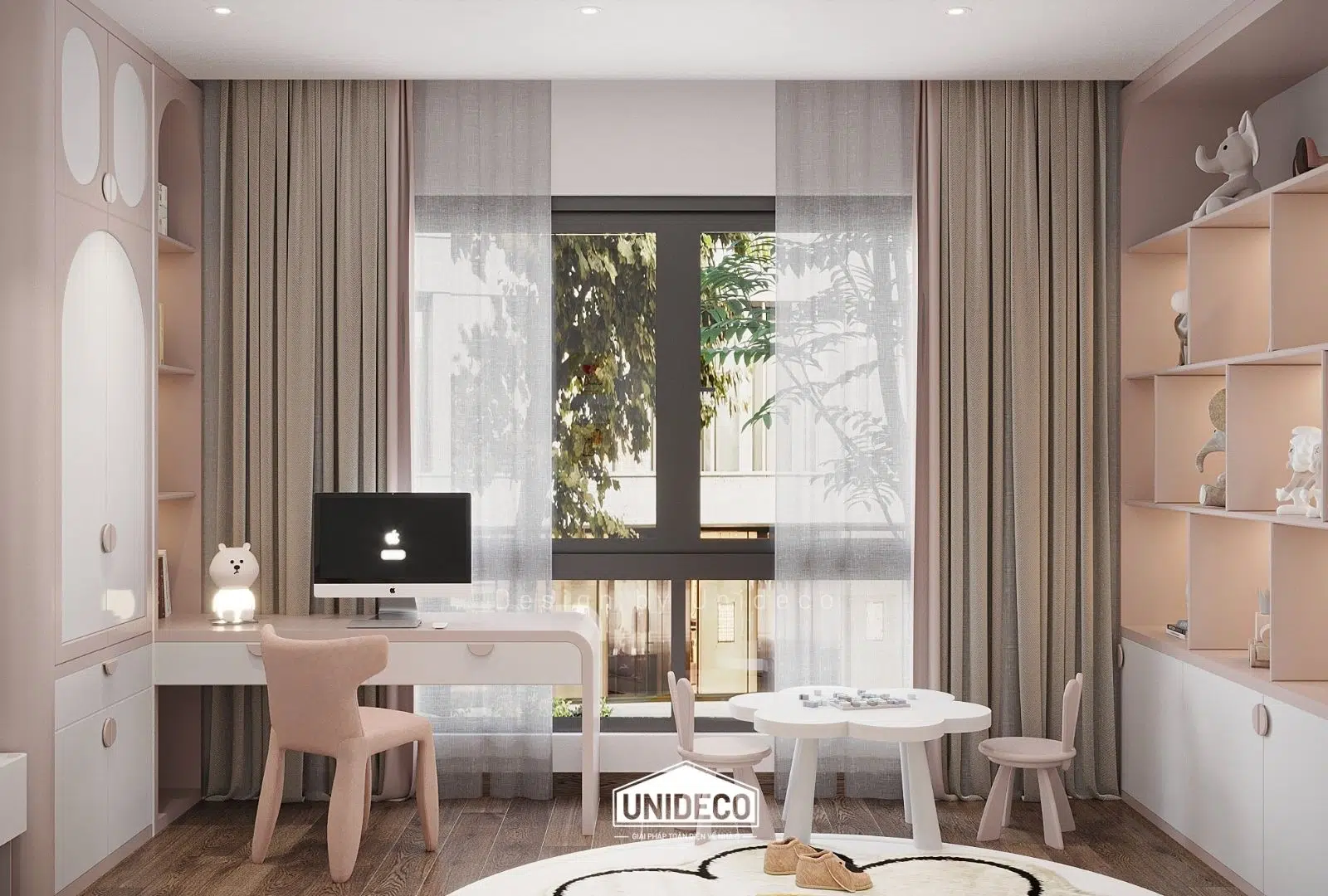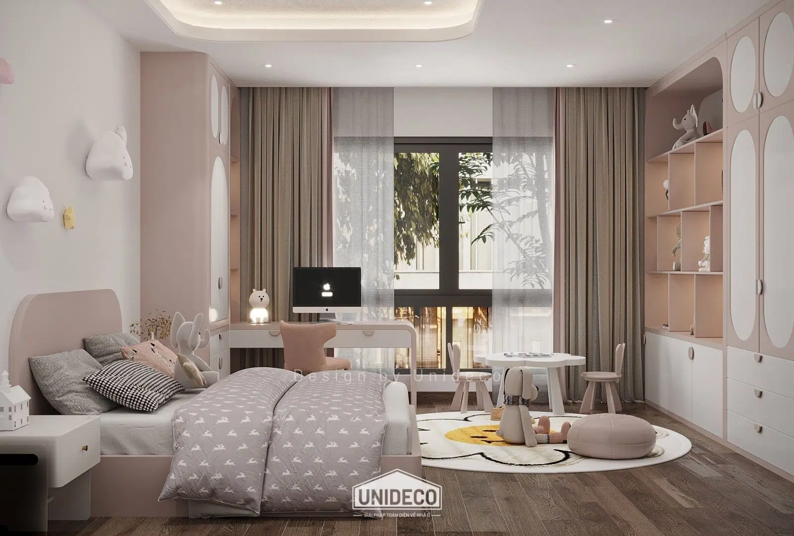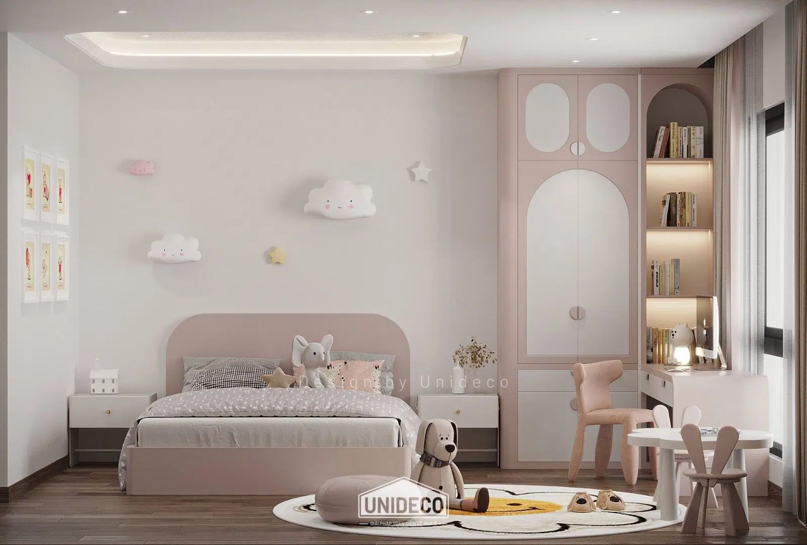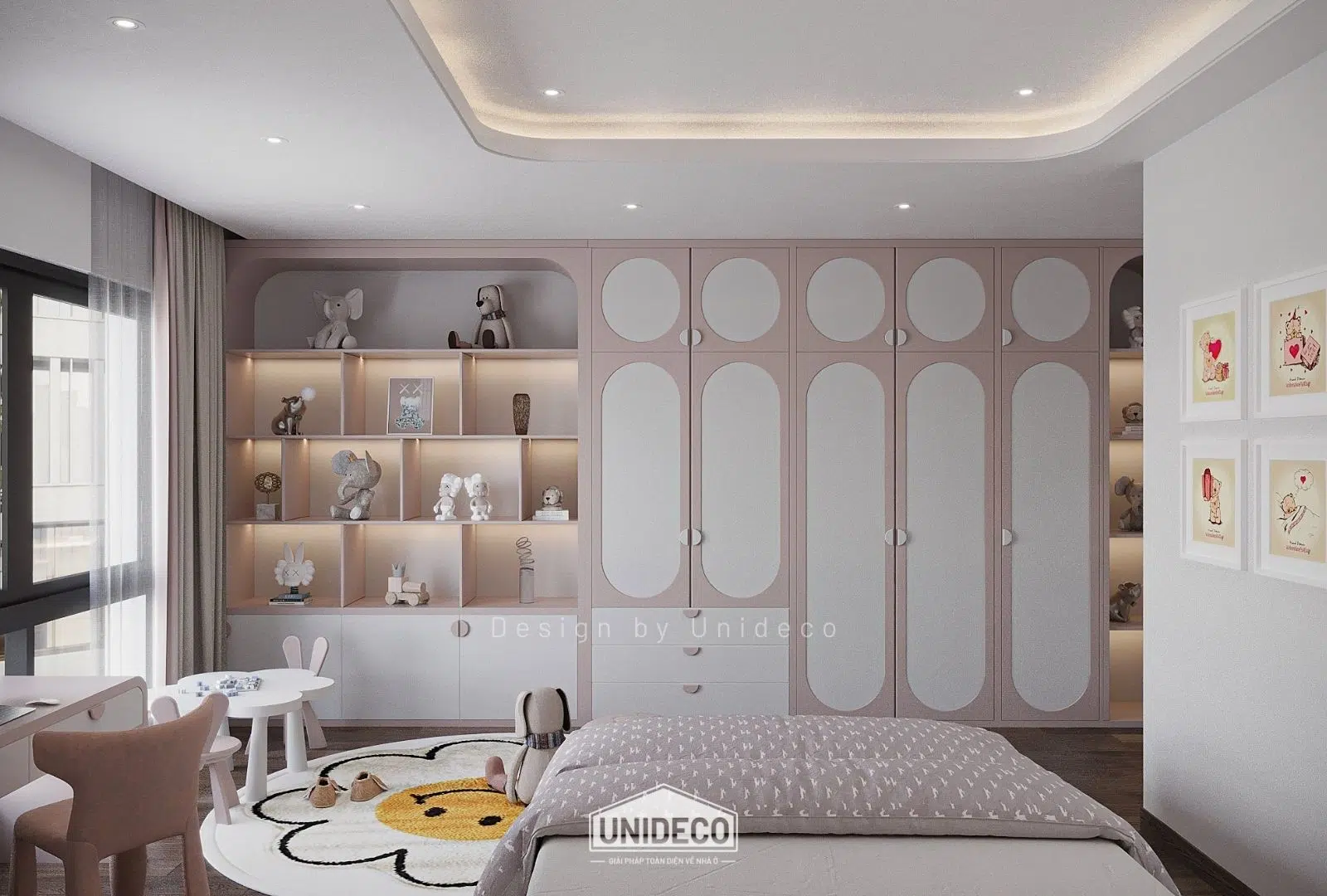 Không gian trẻ em rực rỡ với các màu pastel nhẹ nhàng khơi dậy sự sáng tạo, trong khi những ô cửa kính lớn đón ánh sáng tự nhiên, biến mỗi góc nhà thành nơi lưu giữ niềm vui và cảm hứng.