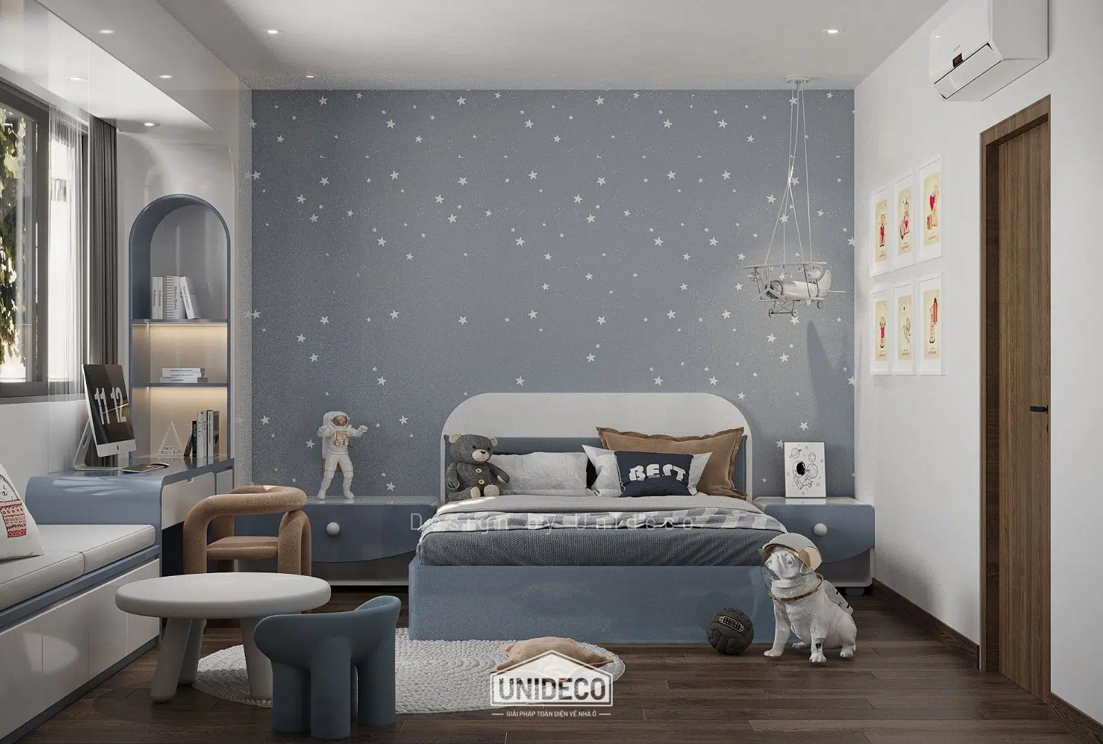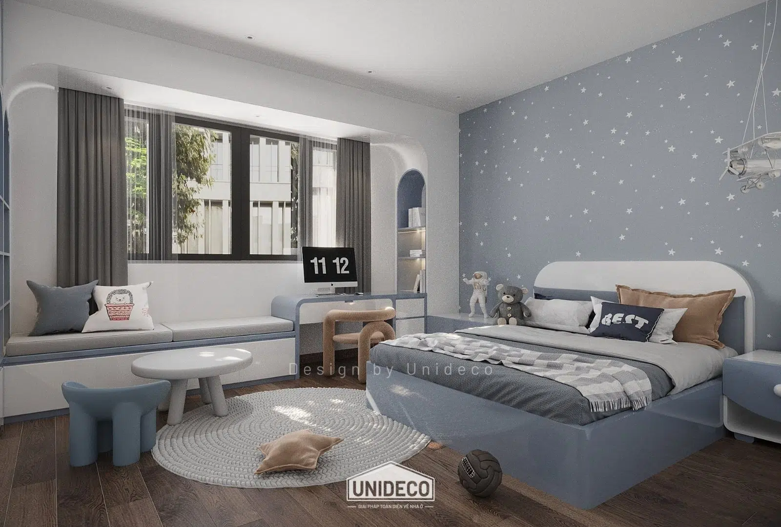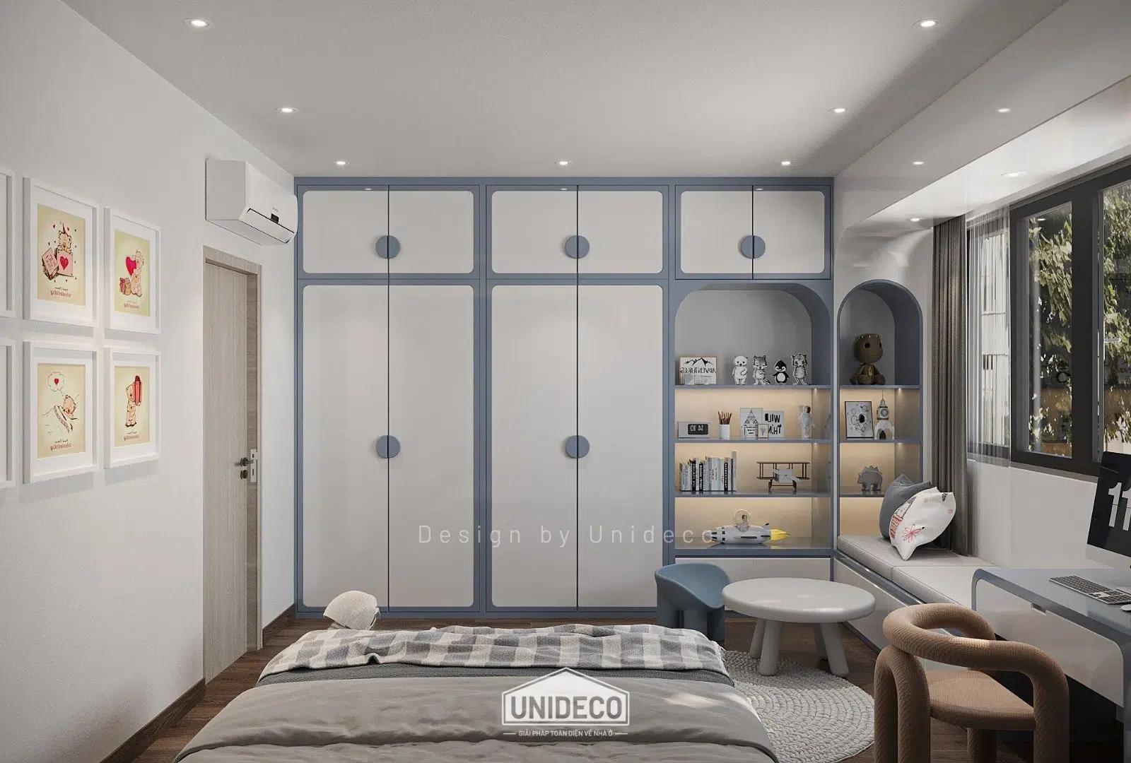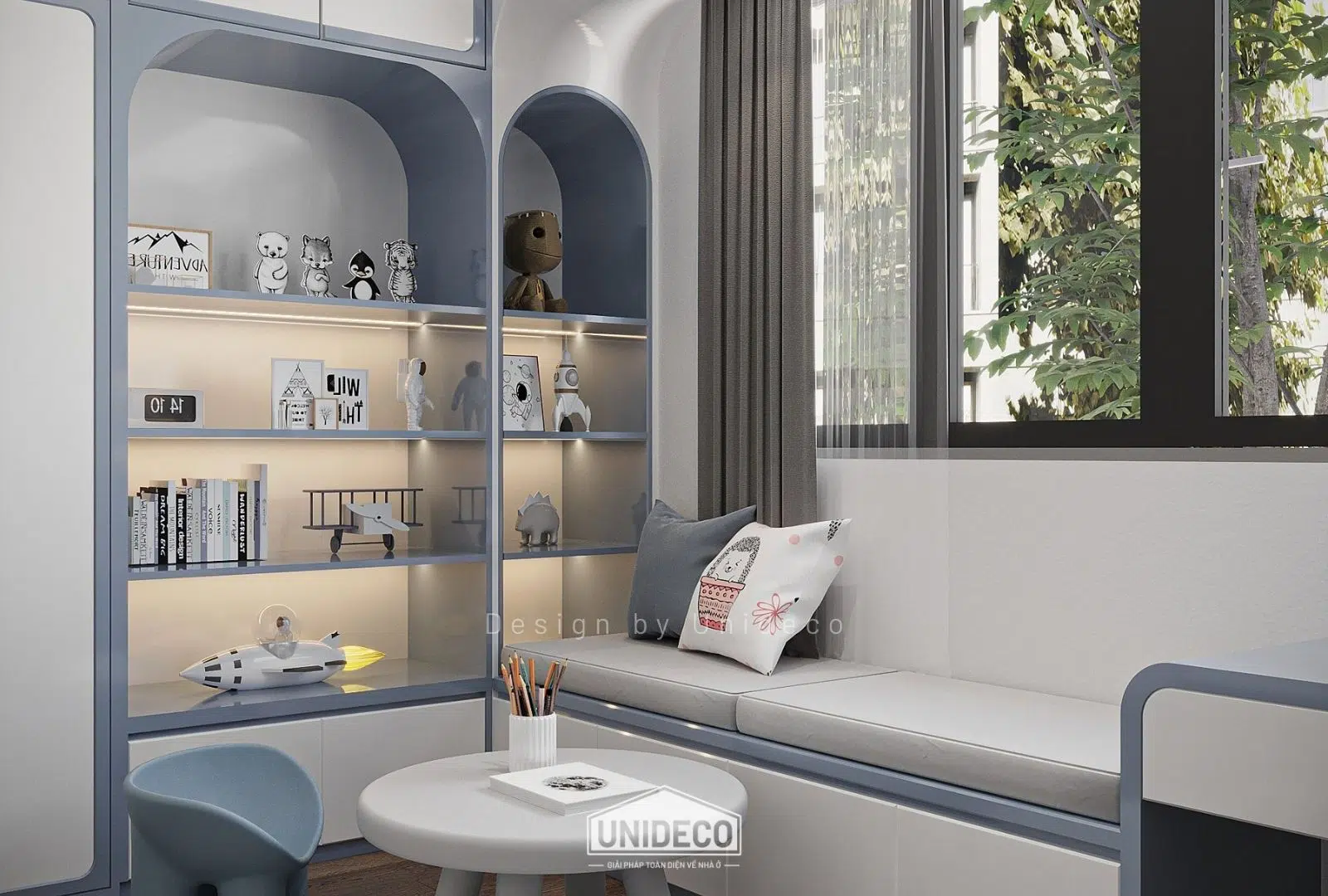 Không gian trẻ em rực rỡ với các màu pastel nhẹ nhàng khơi dậy sự sáng tạo, trong khi những ô cửa kính lớn đón ánh sáng tự nhiên, biến mỗi góc nhà thành nơi lưu giữ niềm vui và cảm hứng.